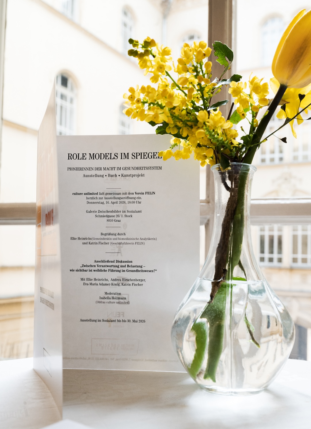 In der Galerie Zwischenbilder im Sozialamt Graz, Schmiedgasse 26, eröffneten culture unlimited und wir gemeinsam unsere Ausstellung „Role Models im Spiegel: Pionierinnen der Macht im Gesundheitssystem“ – ein Projekt, das Kunst, Fotografie, Literatur und reale Biografien zu etwas Besonderem verbindet: zur sichtbaren Würdigung von Frauen, die das Gesundheitssystem tragen, prägen und verändern.